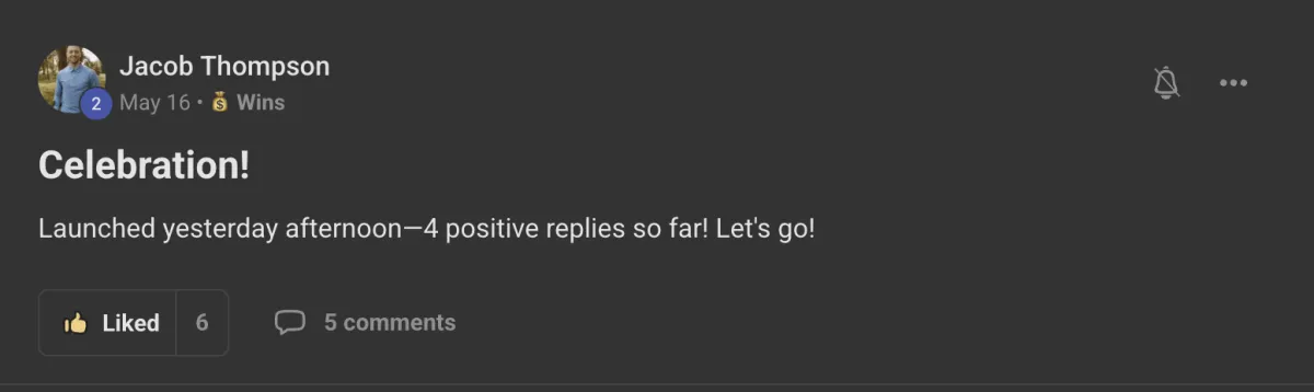 Within 14 days, we installed our outbound system, clarified his ideal audience, and launched a campaign tailored to his message. Jacob generated 4 qualified leads on day one. and things only accelerated from there.